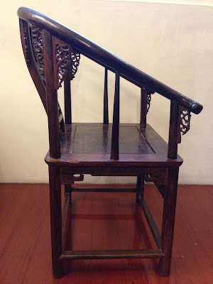 現在我常坐在椅子上,遙想何種人家會訂製做工這麼考究的傢俱,古早的傢俱都是請匠工師父長住家中,依照宅主人所需而替該戶人家施工訂製。這對圈椅原本的主人,應是追求美感的文人吧!才會有這麼雅致的要求,讀書人能有型制脫俗的椅子相伴,真得很幸福。